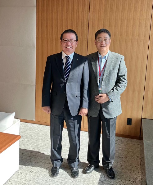 On the morning of February 9th (Chinese New Year's Eve), General Manager Cai Jianxin met with Mr. Jun Horie, Executive Director of Marubeni Corporation, and Mr. Kinuhata Masatoshi, President of Marubeni Chemix, at the new office building of Marubeni Corporation. Both sides joyfully reviewed the nearly thirty years of friendly cooperative relations and discussed the possibilities of extensive cooperation between Shanghai Jiexiao and Marubeni Corporation in various fields under the new circumstances.