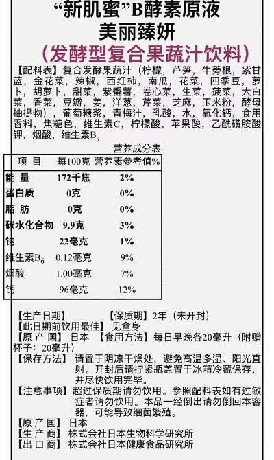 我司與株式合社日本生物科學研究所合作,進口它們研發生產的“新肌蜜”B酵素原液(美麗臻妍),又一個有利健康的保健品!開始投放中國市場。