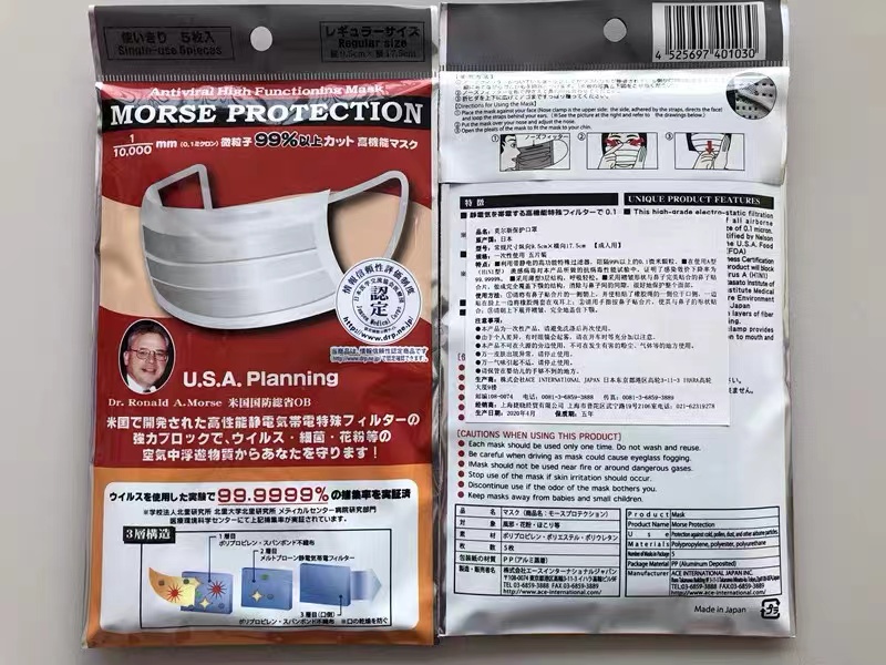成人款與兒童款莫爾斯保護口罩(日本ACE株式會社)